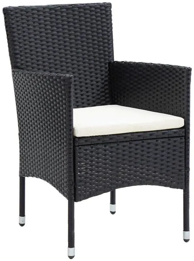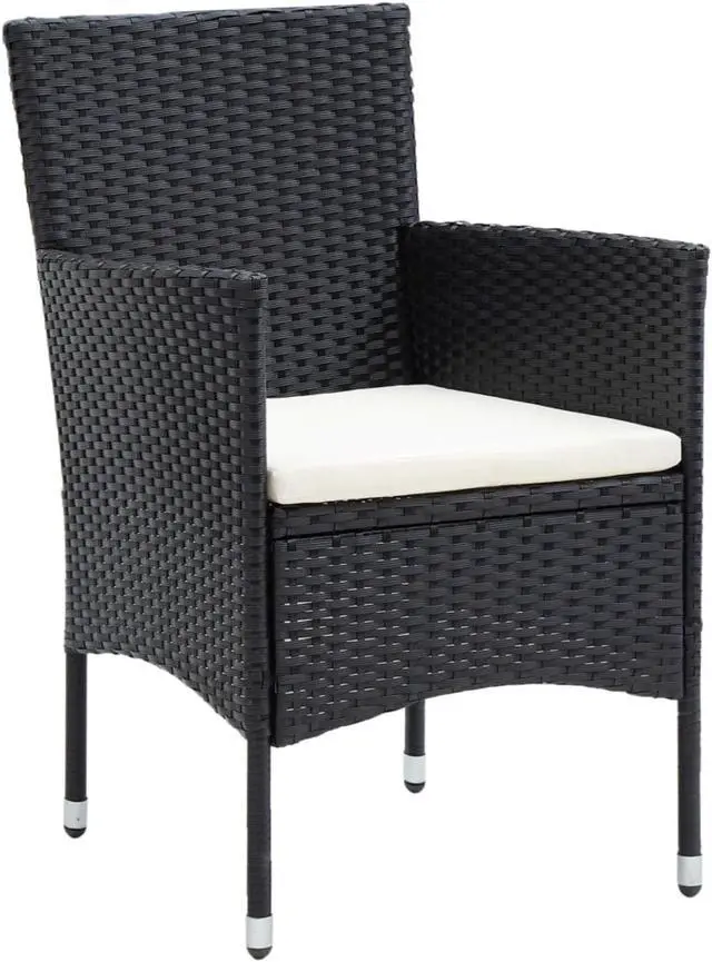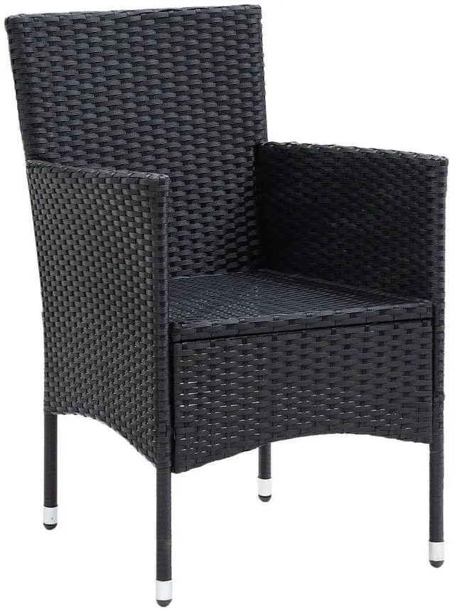 Add a touch of modern style with this poly rattan patio chair set. It is specially designed to complete your outdoor dining set or simply stand out on its own. This garden chair set is eye-catching in any setting. Sturdy steel frame wrapped with hand-woven PE rattan, the armchair is rust and mildew proof, providing years of quality relaxation. The outdoor chair is designed with curved backrest and armrest, with an ergonomic shape for maximum comfort. The included seat cushion offers added support while seating. Note: We recommend covering the chair in the rain, snow and frost for long life.