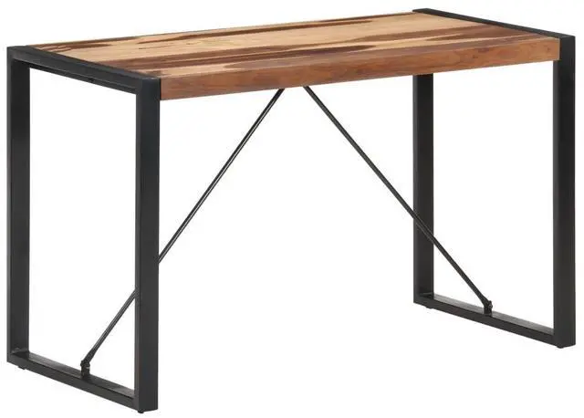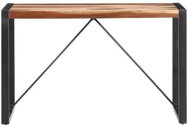 This wooden dining table adds an industrial look to your dining room and kitchen. This dinner table is made of solid acacia wood and rubberwood, making it stable and durable. The sheesham finish makes it feature natural grains and smooth texture. The powder-coated steel legs provide extra stability to this table. Important note: Colours and grains may vary from piece to piece, making each piece unique; the delivery is random.