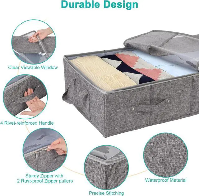 EASY TO USE: The 4 reinforced widened handles on the front and sides allow you to pull them out in any direction from under bed. The rivets combine handles with PP boards together so it won't tear easily. The transparent lid can help you find items quickly. The two-way rustproof zippers are smooth, sturdy and durable.