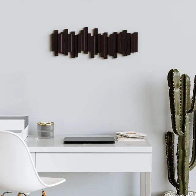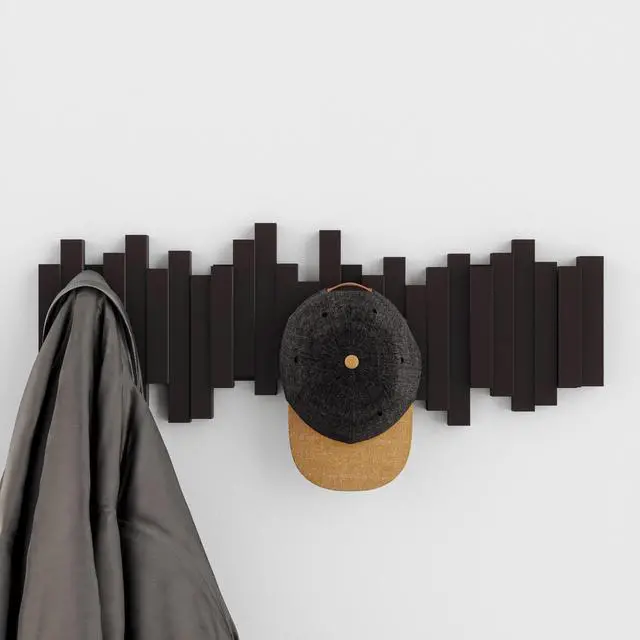 Keeping entryways with all the coats and accessories neat and organized is always a challenge, especially in small spaces. Transform your entryway into a tidy and stylish space. Introducing Sticks Multi Hook by UmbraSticks Multi Hook is a sculptural and yet functional wall coat rack that will provide you with ample hanging space in virtually every area of your home, office or dorm room. This versatile and decorative coat hanger accommodates all your personal hanging needs such as coats, scarfs, purses, umbrellas, bathrobes, towels, accessories or even light weighted cleaning tools like brooms, sweepers, and more.