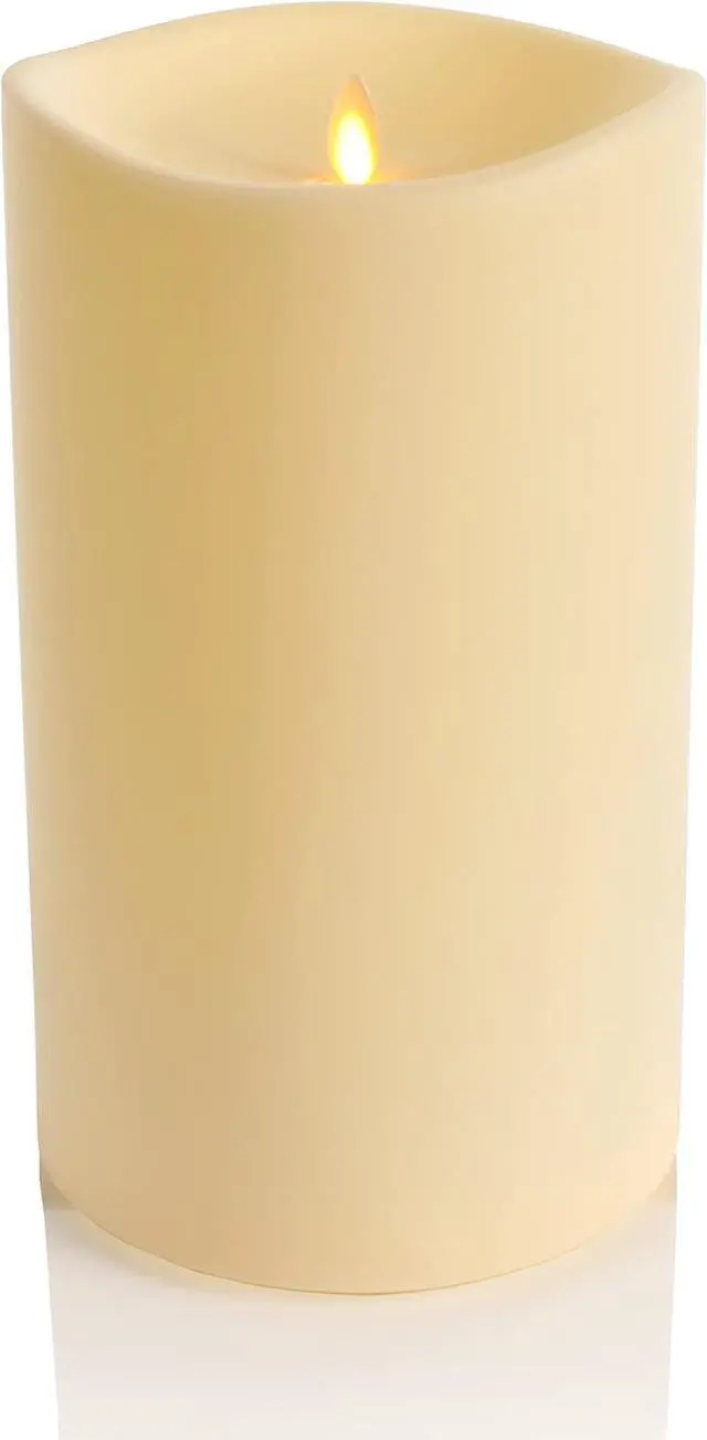Luminara Realistic Artificial Moving Flame Outdoor Pillar Candle - Moving Flame LED Battery Operated Lights for Outside Christmas, Halloween - Remote Ready - Remote Included - Ivory - 6" x 11"