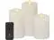 Enjoy the cozy glow of candles without any of the fuss! These three candles are 3" in diameter each, and include a 4.5", 5.5", and 6.5" candle in height. These real flame-effect candles aren't so small they disappear into the background, but not so big they dominate the room. These flameless candles are capable of being operated by a remote, which is included. They also can be turned on and off by a switch on the bottom, which also activates the timer.