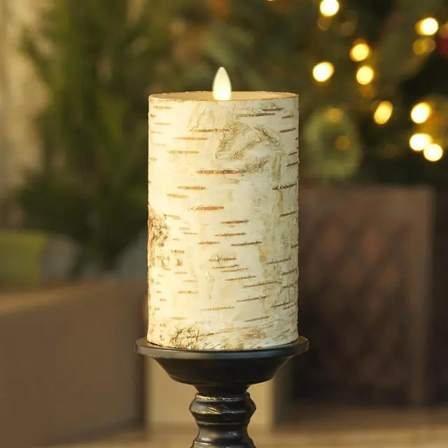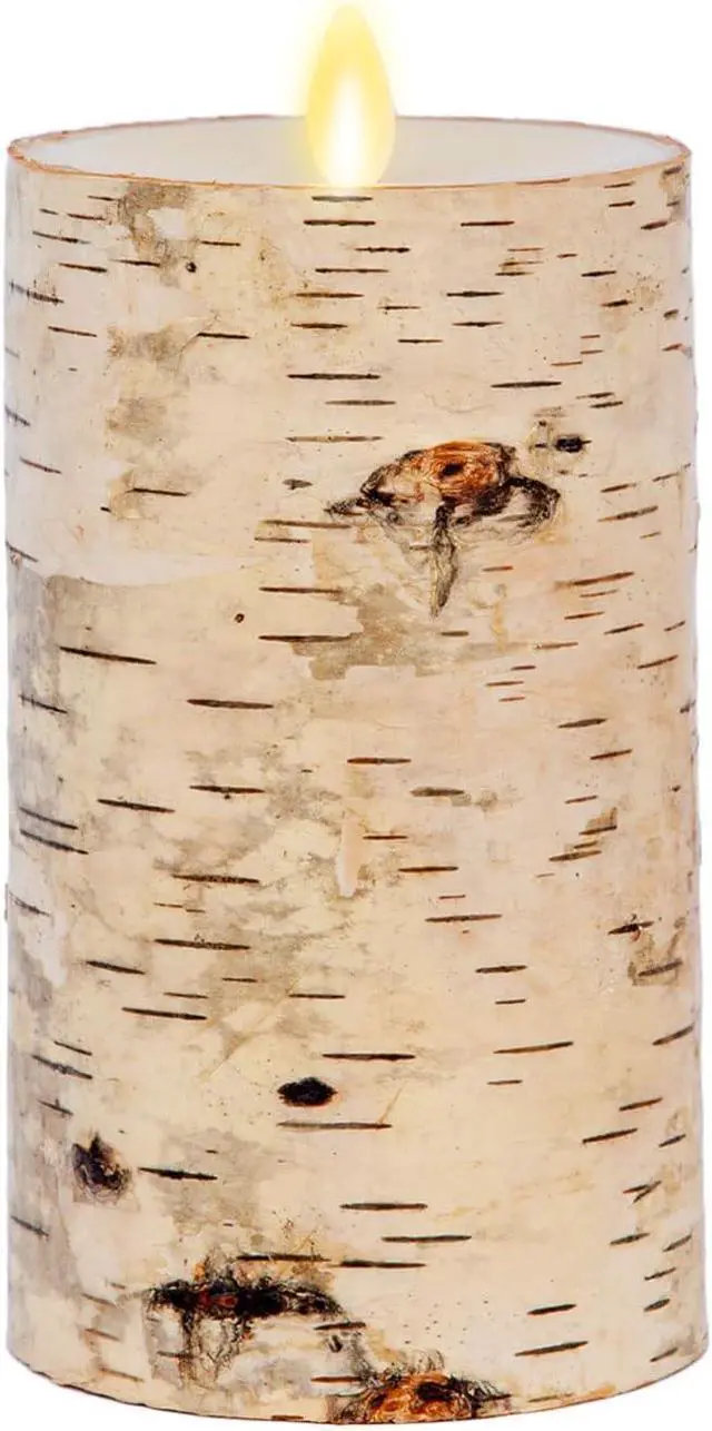 Luminara Real Birch Bark Wrapped Flameless LED Candle, 3.5" x 6.5", Battery Operated Moving Flame Pillar Light with Timer - Natural Decor Unscented