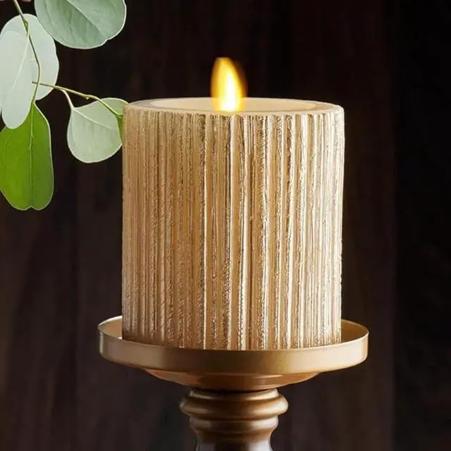 Luminara Flameless LED Metallic Embossed Furrow Candles are made with 100% pure paraffin wax, hand poured and carefully designed to look like traditional candles. They are safer to use than traditional candles, since no actual combustion or wax consumption happens. That means no soot or chemicals are released into the air, making them perfect for use indoors. They're perfect for households with small curious children and rambunctious pets.