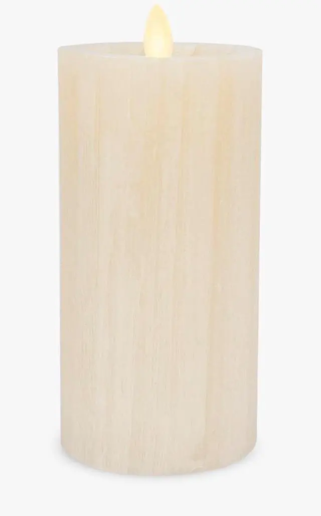 Highlights Luminara's patented Real Flame-Effect Moving Flame technology. Crafted from unscented 100% real wax, the candle measures 3" in width and 6.5" in height.