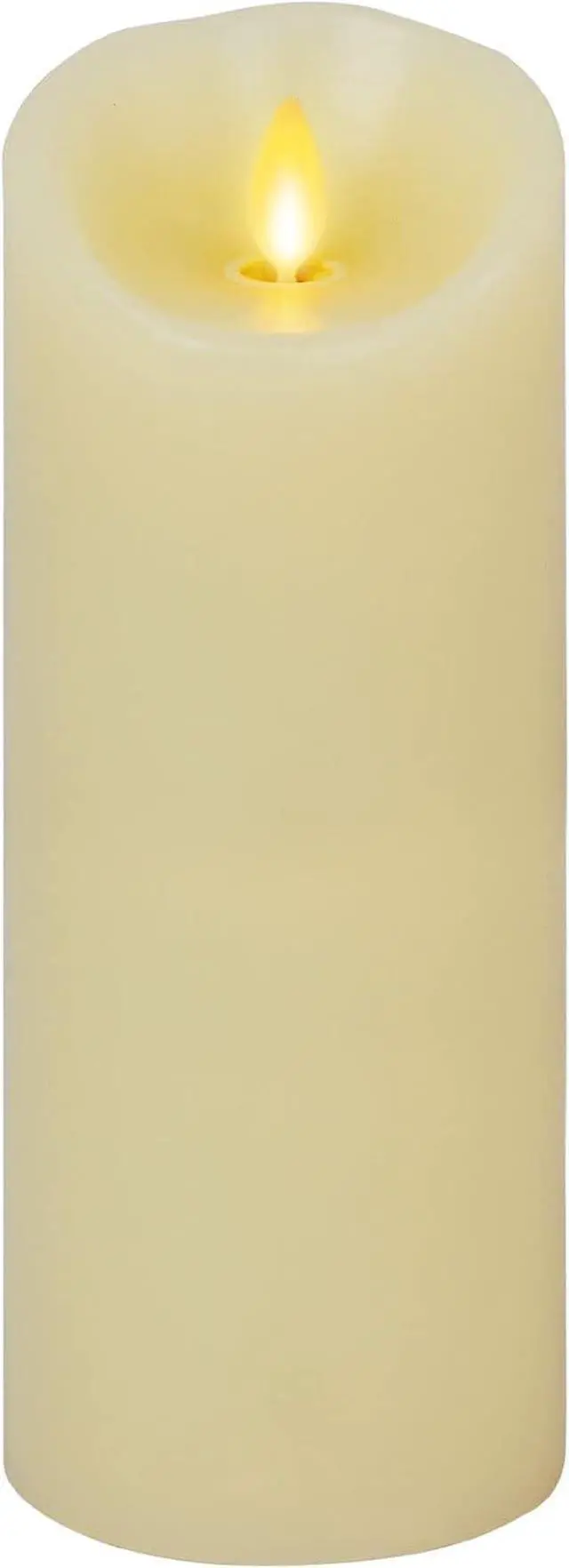Technology & Design: Features the patented REALISTIC MOVING-FLAME LED pillar technology with a smooth, UNSCENTED IVORY WAX MATTE FINISH (Finish Types: Matte; Shade Color: Ivory).