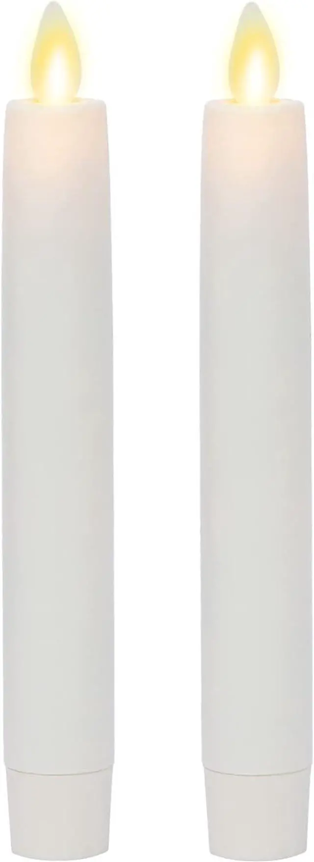 When you turn on your Set of 2 Ivory Flameless Candle Tapers, the yellow flame bounces off the walls just like the light from a traditional candle. The realistic moving flame flickers and illuminates your table settings. Bring these candles to a formal dinner, or make them a permanent fixture among your home decor.