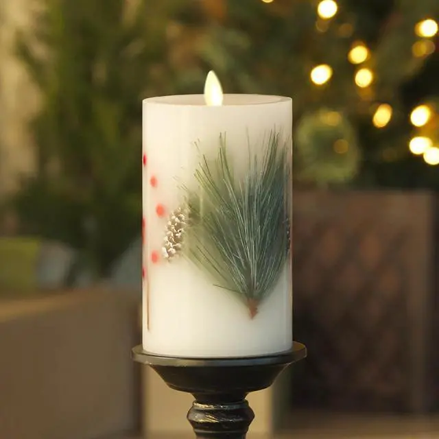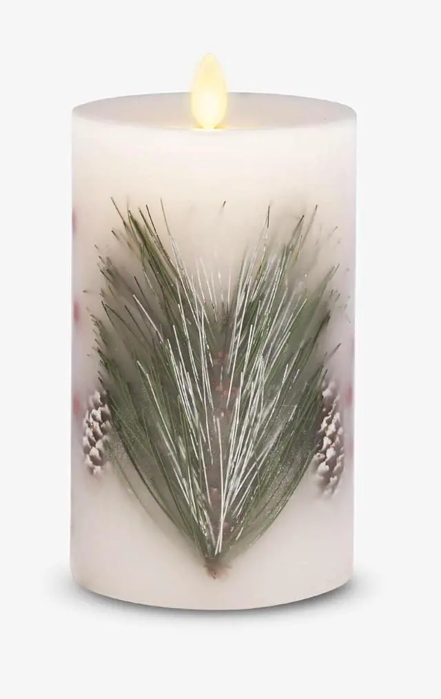 Luminara Flameless LED Candle Pine Berries Pinecone Embedded Real Wax Moving Flame Pillar Unscented with Recessed Edge, Remote Ready, Timer ( 3.5 x 6.5 inch)