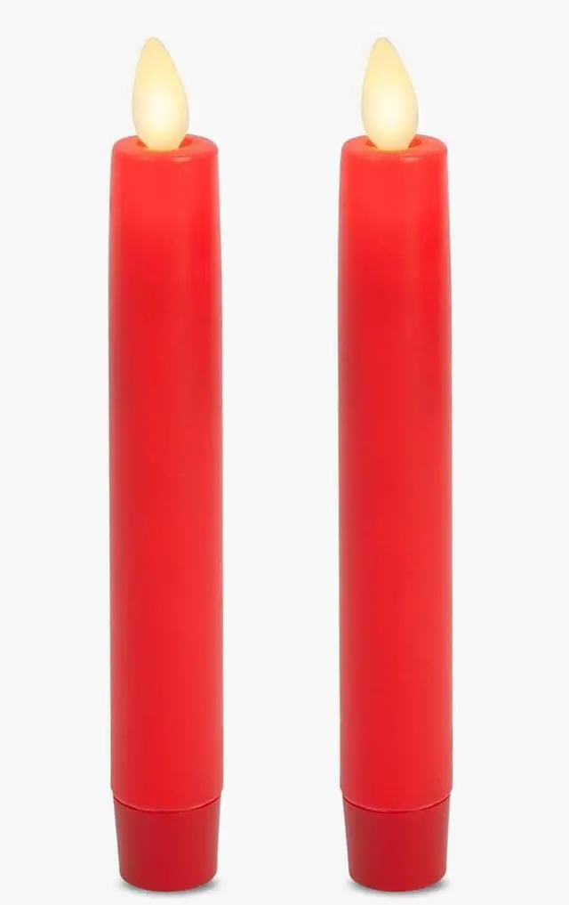 Luminara Set of 2 Flameless Candle Tapers ( 0.87" x 6.7" ) Flat Top Real Wax Unscented (True Red)