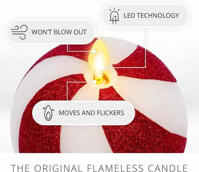Luminara - Flameless Holiday Crystal Beads Glitter Sphere Candle - Candy Cane Red - Pack of 1-4x 4.25 - Auto Timer Built-in 5-Hour Timer Indoor Use