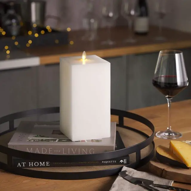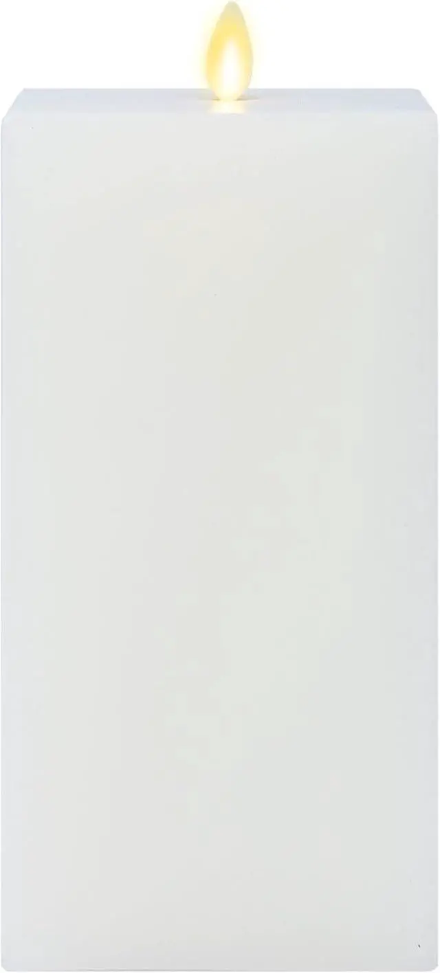 Luminara Square Flameless Candle Moving Flame LED Pillar looks like a modern art piece when not in use. Switch it on for a bright candle that casts a flickering glow across your table, countertop, or fireplace mantel.