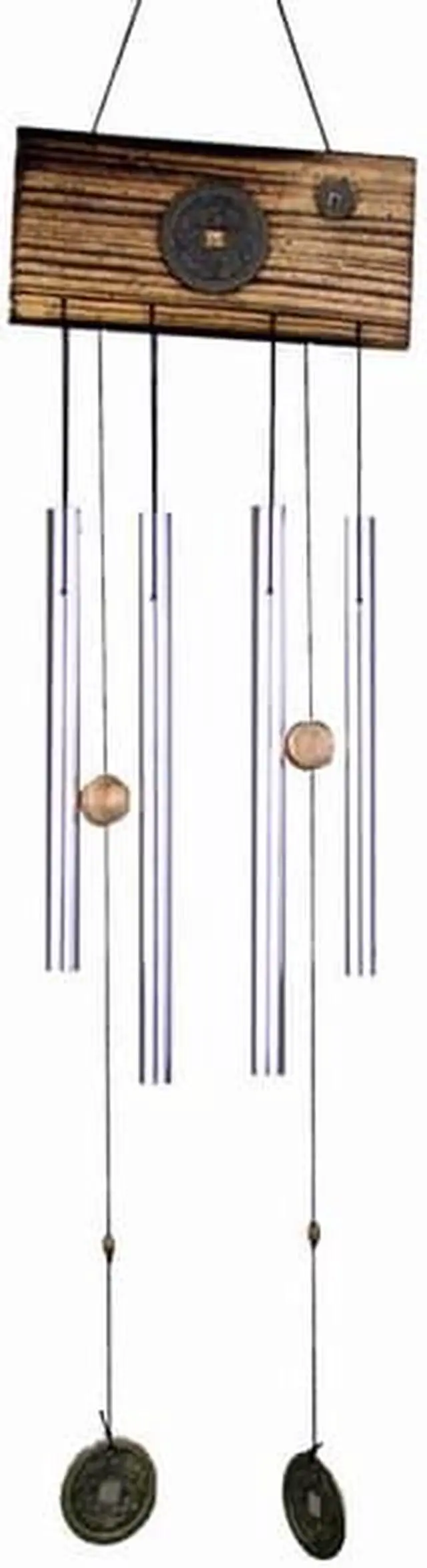 This aluminum bronze Feng Shui wind chime makes soothing sound to your porch, patio, garden. It is believed that Feng Shui Wind Chime may bring you wealth and keep your home peaceful and safe by frighten away evil spirits. Complete with hanging ring