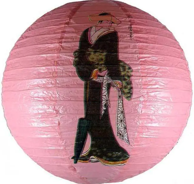Japanese Geisha Design Round Paper Lantern (Pink)