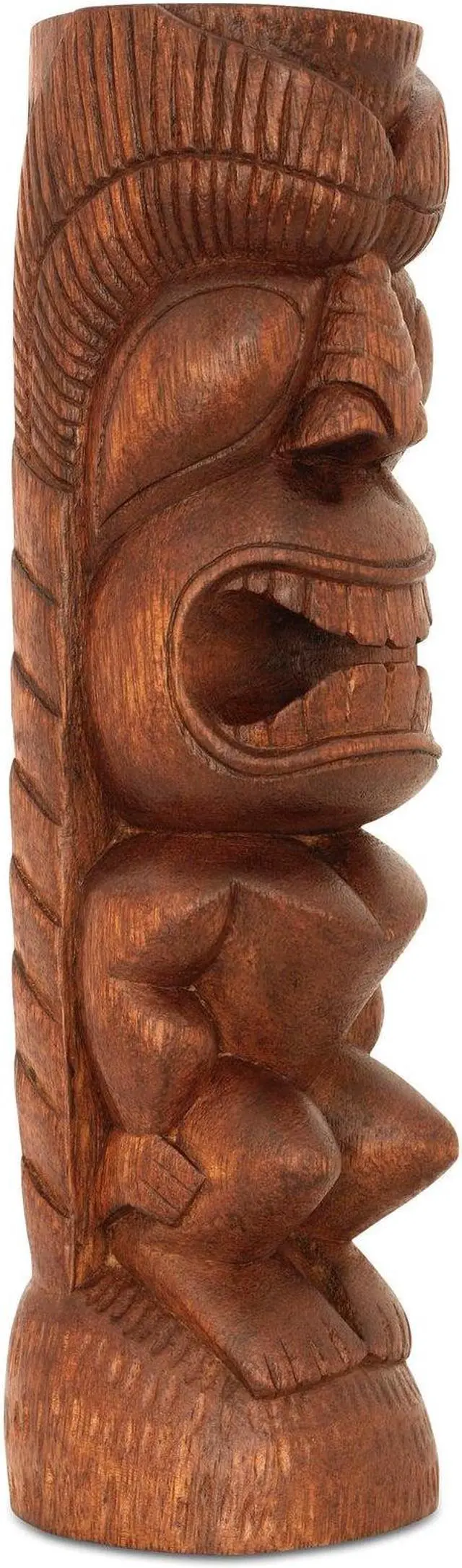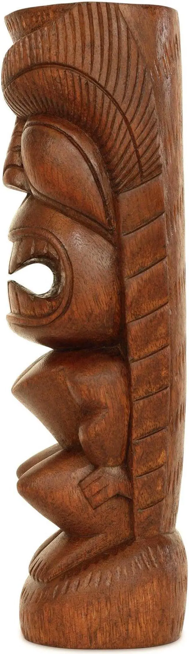 Decorated with intricate carvings that symbolically represent varying aspects of island life and reasons to luau, totem poles and tiki sculptures have long been synonymous with Hawaiian culture. Bring the laid-back vibes of Hawaii to your desk or shelf by displaying this wooden tribesman statue hand-carved from natural suar wood.
