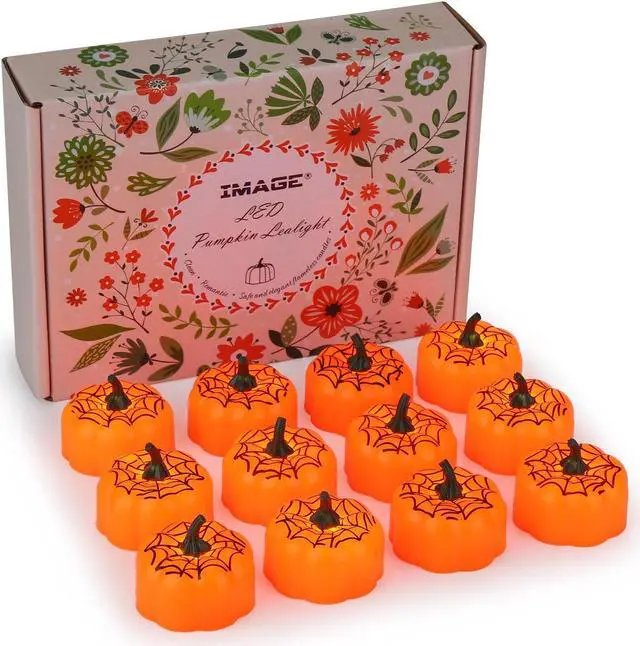 12 * LED Pumpkin Tealight Candles