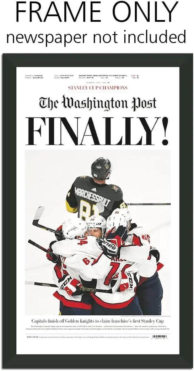 Newspaper Frame - Made to Display Newspapers Measuring 12.5 x22 Inches UV RESISTANT ACRYLIC Front To Protect Your Newspaper. FOAM BOARD BACKING and Hanging Hardware Included THE ENTIRE NEWSPAPER Can Fit In This Frame -- Not Just the Front Cover! FRAME ONLY - Newspaper Not Included. PROUDLY MADE IN THE USA