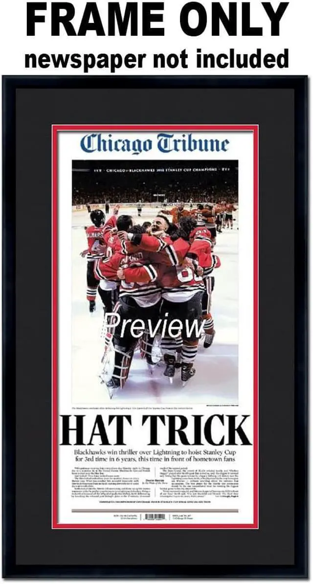 Modern Black Solid Wood Newspapers And Periodicals Frame Made To Display San Francisco Chronicle Or Any Newspaper Or Other Media Measuring 11X22 Inches. Black And Red Double Matting, Frame-Grade. 060" Acrylic, Foam Board Backing, & A Custom Cut Insert To Securely Nest Your Newspaper In Place.