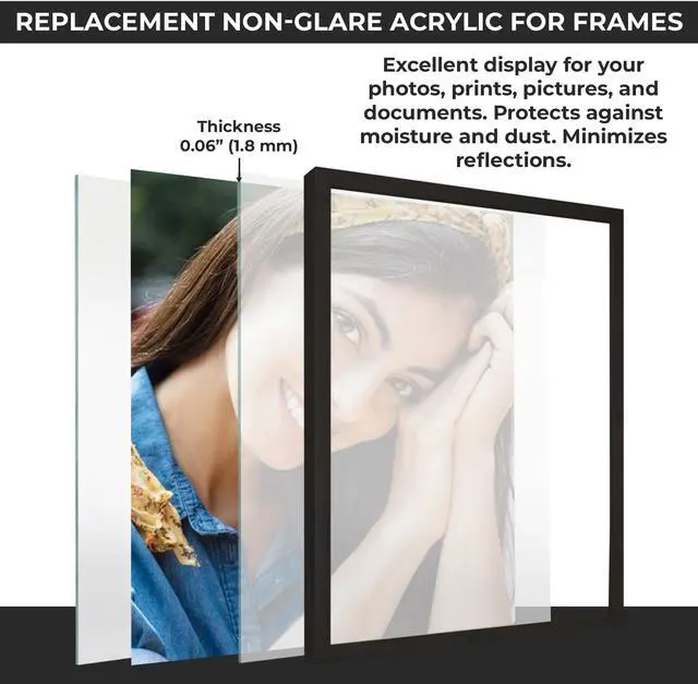 This non-glare acrylic 12x18 frame front is transparent, lightweight, UV-resistant and shatter-resistant while minimizing glares and reflections. More sizes available that suit your frame to replace your shattered or scratched frame acrylic.