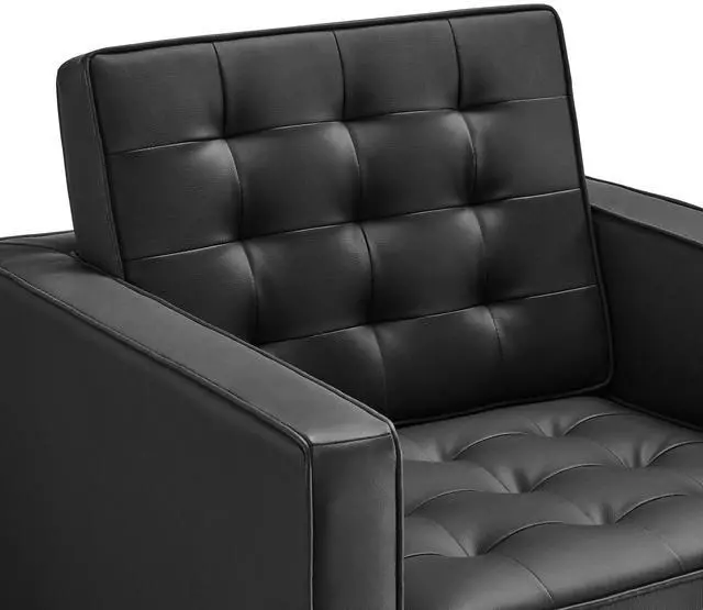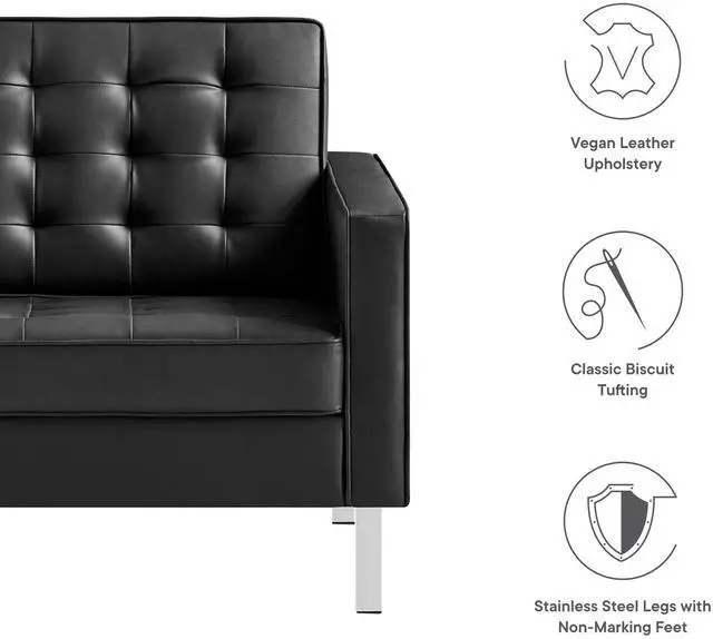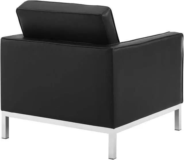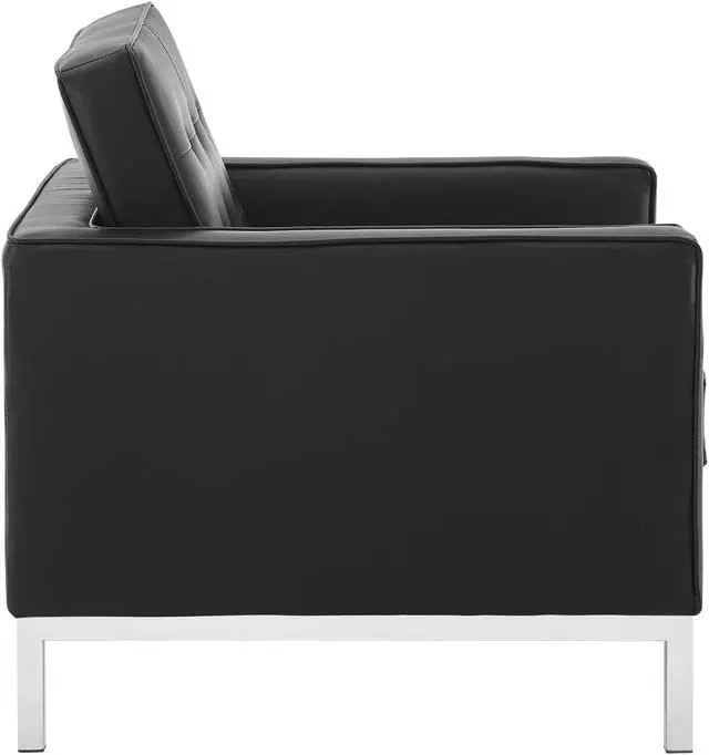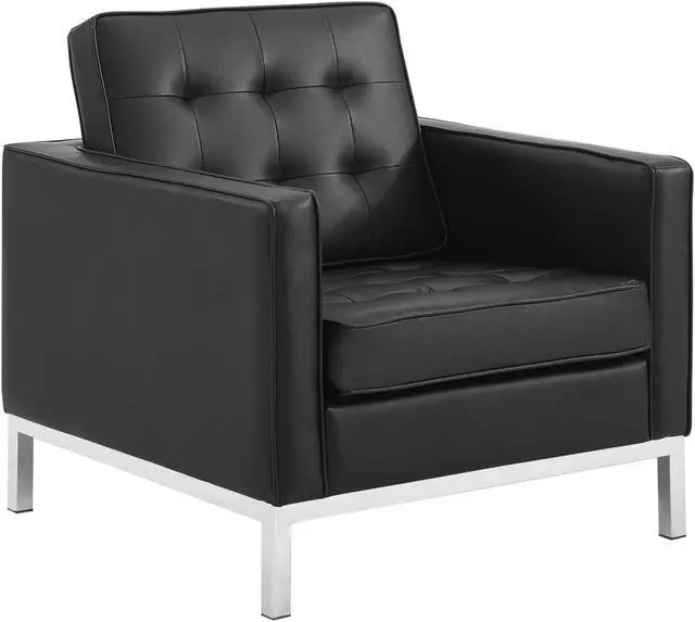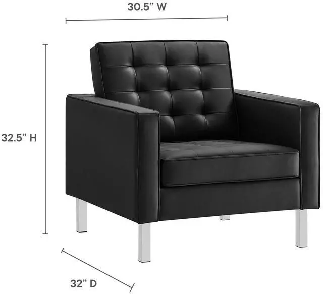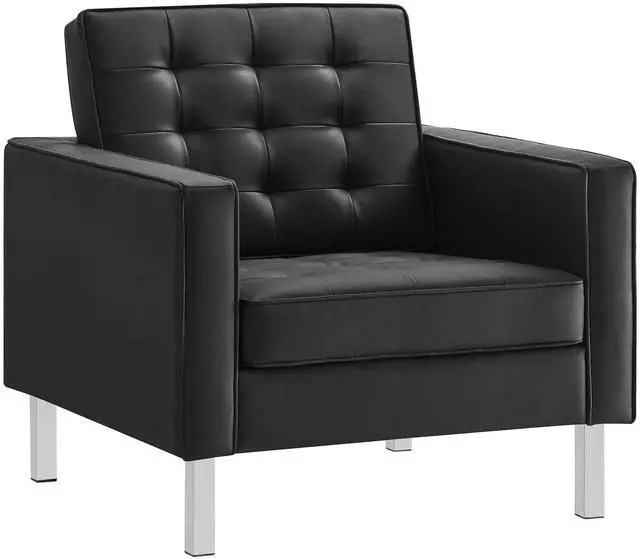 Revolutionize your living room furniture with the iconic Loft Tufted Faux Leather Medium Accent Armchair. Adding visual depth to your living room or lounge space, Loft features soft and durable faux leather upholstery accented in elegant button tufting. This modern living room chair comes in a captivating linear design with an external tubular stainless steel frame, four stainless steel silver legs, and non-marking foot caps. Inspired by the richness of mid-century modern style, Loft is the preferred choice of living rooms and lounge spaces. Chair Weight Capacity: 300 lbs.Set Includes:One - Loft Tufted Button Armchair