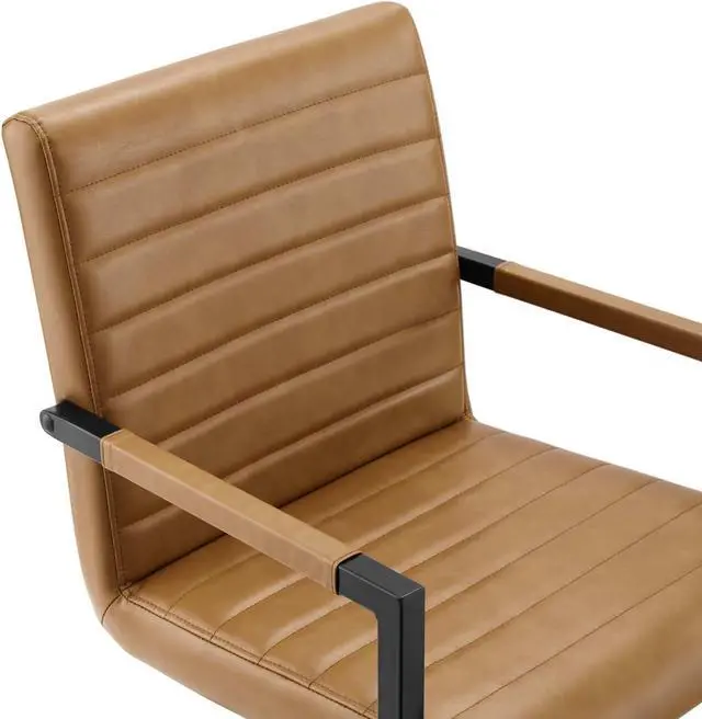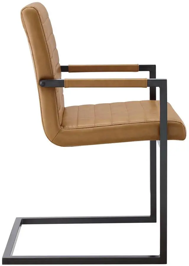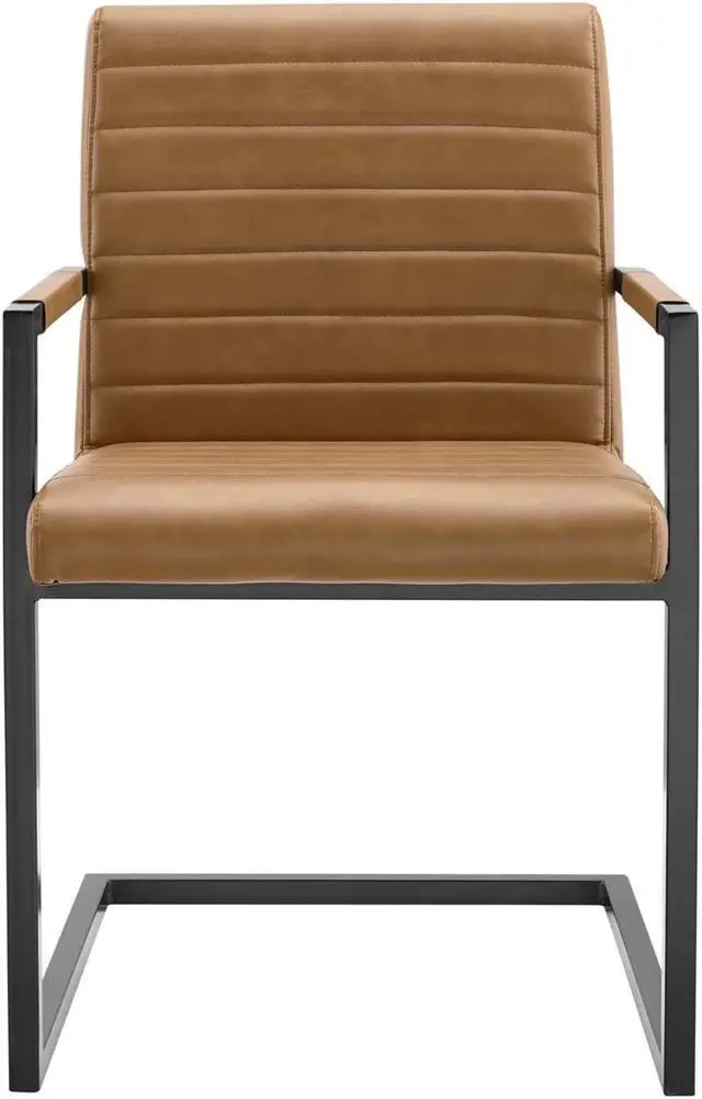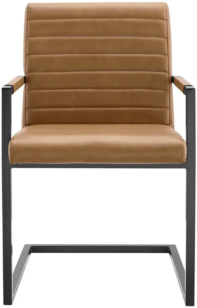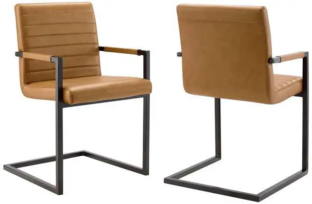 Bring contemporary intrigue and retro modern style to your dining space with the Savoy Vegan Leather Dining Chairs - Set of 2. Vegan leather upholstery makes this armchair perfect for the dining room or living space, while horizontal channel tufting brings mid-century detail. This accent chair features a sled base crafted with square tubular powder-coated metal, non-marking foot caps, and padded armrests. Dense foam padding offers a supportive seat while dining or relaxing. Chair Weight Capacity: 300 lbs. Set Includes: Two - Savoy Vegan Leather Dining Chairs