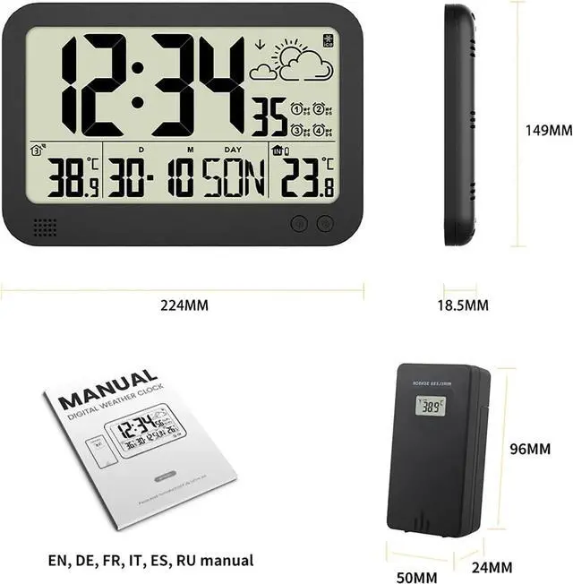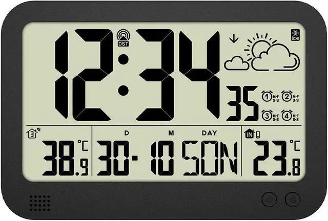 6. 4 alarms can be set for weekdays/weekends and daily,