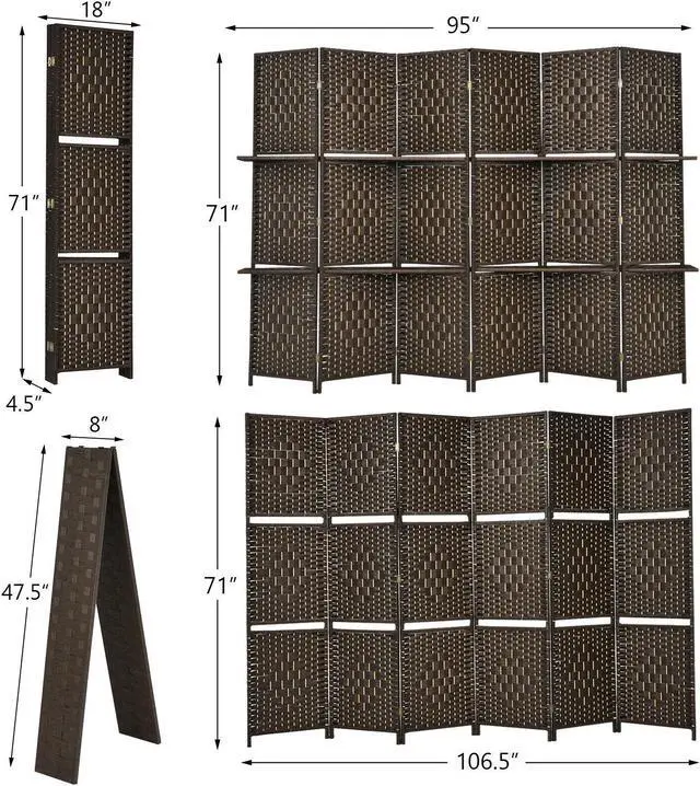 Premium and Durable Material: This room screen is constructed with high quality poplar wood as its frame, featuring great solidness and durability. The divider itself uses well-chosen hand-woven fiber which is environmentally friendly and beautiful. It is non-toxic and odorless and also fits baby room.