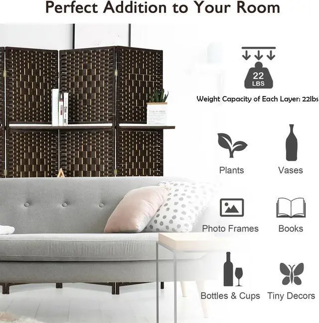 Simple Design and Storage Shelf: The room divider is applied with exquisite workmanship and designed in a natural style. The two shelves provide you with extra space to display small decors. It combines practicality and beauty and will be a perfect addition to your home.