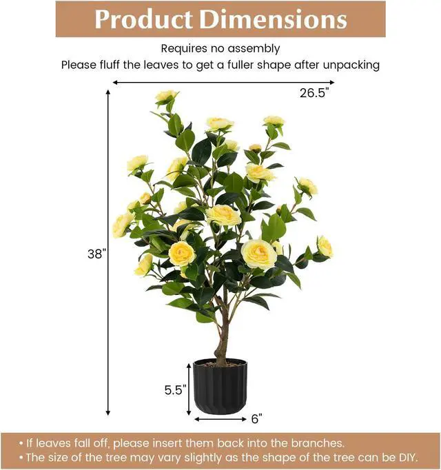 Versatile Decoration: Whether you need a stunning centerpiece for your living room, a charming addition to your office, or an elegant decoration for a special event, the camellia tree could effortlessly complement any occasion or setting. It can also be a perfect housewarming gift for your friends. And the 38" fake tree is the perfect height and size for a corner.