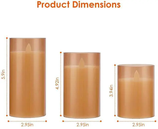 Package Included:This flameless candle set includes 3 candles in various heights(3.94/4.92/5.9),1 remote control and,1 user manual. Remember not to light the candles which may cause personal injury or damage to the candles.