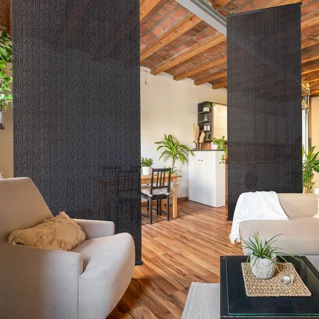 Personalize the position of your hanging room dividers from the ceiling by pressing the gripper.
