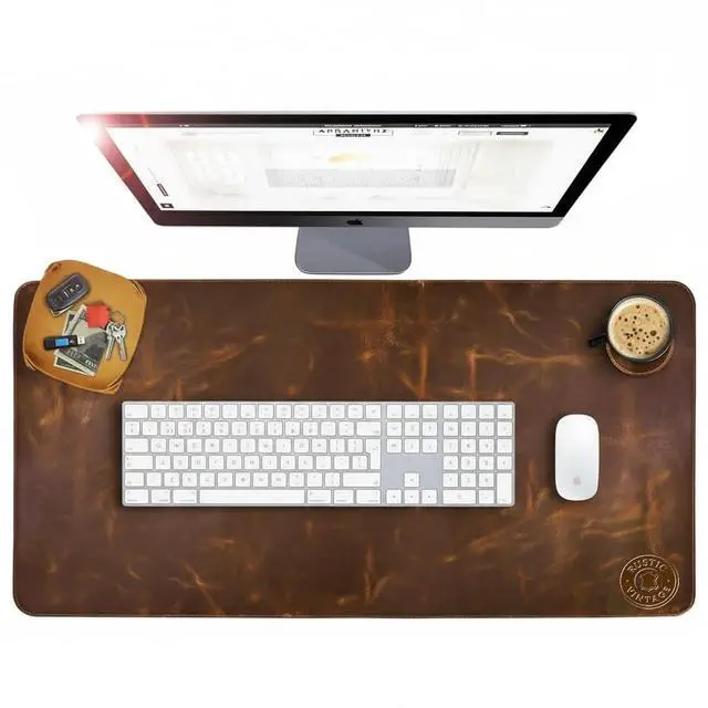 The RusticVintage Real Leather Deskmat is a high-quality desk cover designed to provide a stylish and functional surface for your workspace. Measuring 30x15 inches, it offers ample space to accommodate your keyboard, mouse, and other essential desk accessories. Crafted from premium, genuine leather, this desk protector combines durability with elegance, giving your desk a sophisticated, antique look that enhances any office or home setup. At just 2mm thick, this desk blotter offers a smooth and comfortable surface, perfect for gaming, typing, or office work. The leather surface is soft to the touch, reducing the strain on your wrists and providing a smooth glide for your mouse, making it an ideal choice for both gaming and work environments. The mat also serves as a protector, safeguarding your desk from scratches, spills, and other damage. With its rustic vintage aesthetic, the mat adds a unique, timeless charm to any desk while keeping it neat and organized. Its anti-slip bottom ensures stability, preventing movement during use. Whether you're working, gaming, or simply organizing your space, this large leather desk mat is an essential accessory to enhance both functionality and style in your workspace.