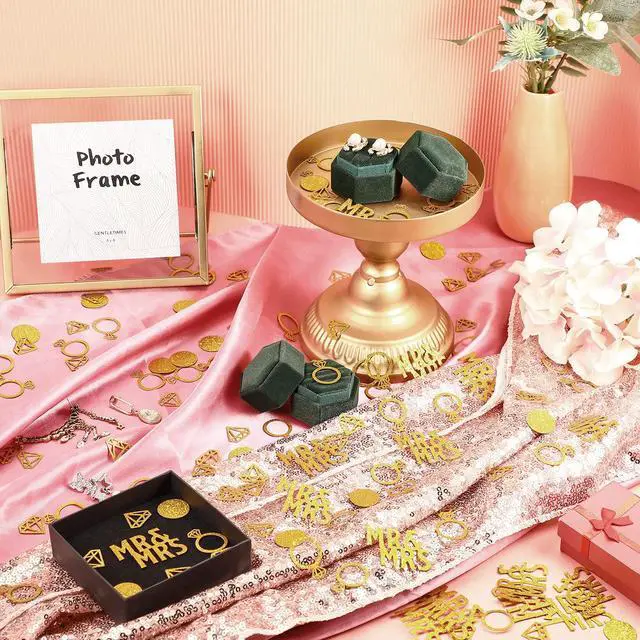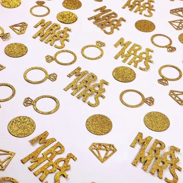 220 Pieces Gold Wedding Table Confetti, Paper Mr and Mrs Gold Diamond Ring Circle Dots Diamond Glitter Confetti for Marriage Ceremony Anniversary Valentine