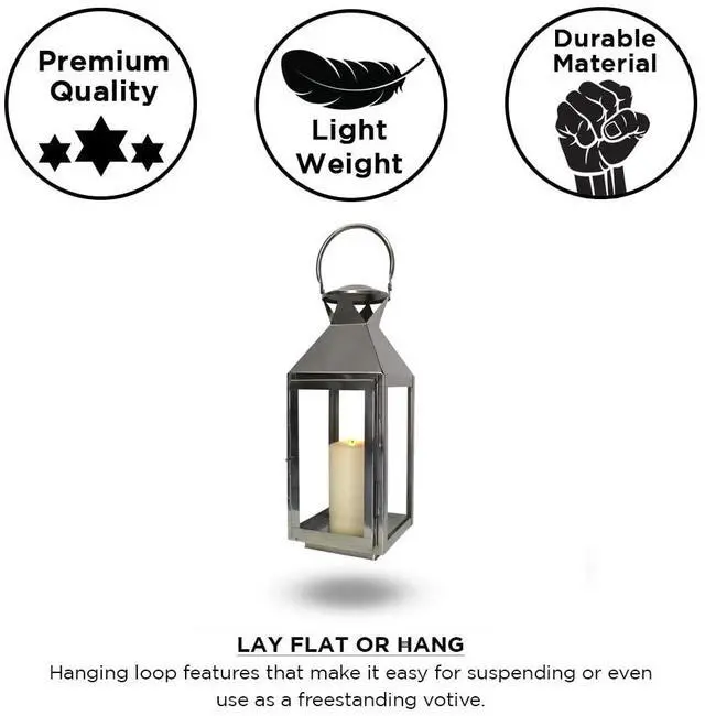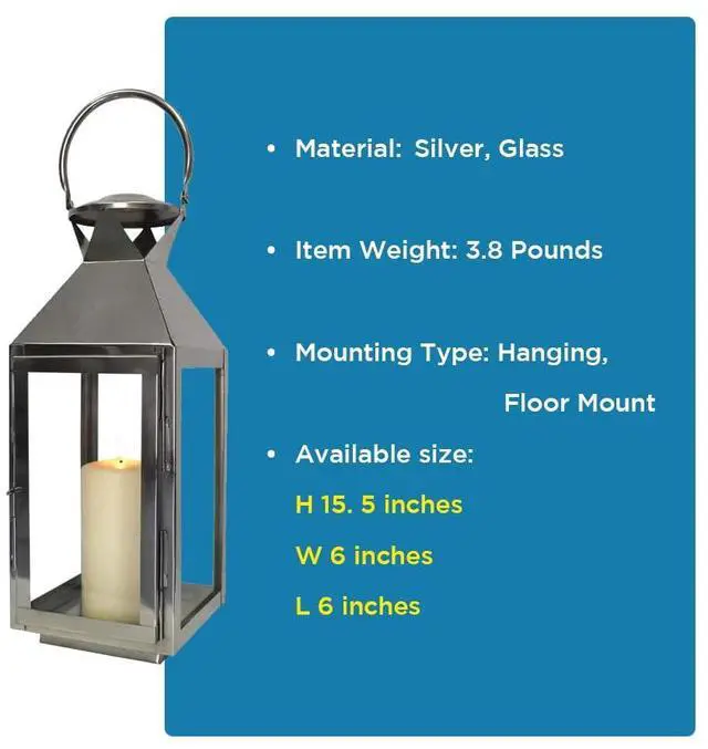 Bring the charm of old world America into your space with our Vintage Style Polished Silver Tone Hanging Candle Lantern. Standing 15 inches high and crafted with tempered glass, this lantern is designed to create a cozy ambiance for indoor and outdoor settings. The lantern's traditional design is not only a work of art but also highly functional. Simply add a candle, tea light, or battery-operated light to enjoy its warm glow. The hanging loop feature allows for easy suspension, or you can choose to use it as a freestanding votive, making it a versatile addition to your decor.