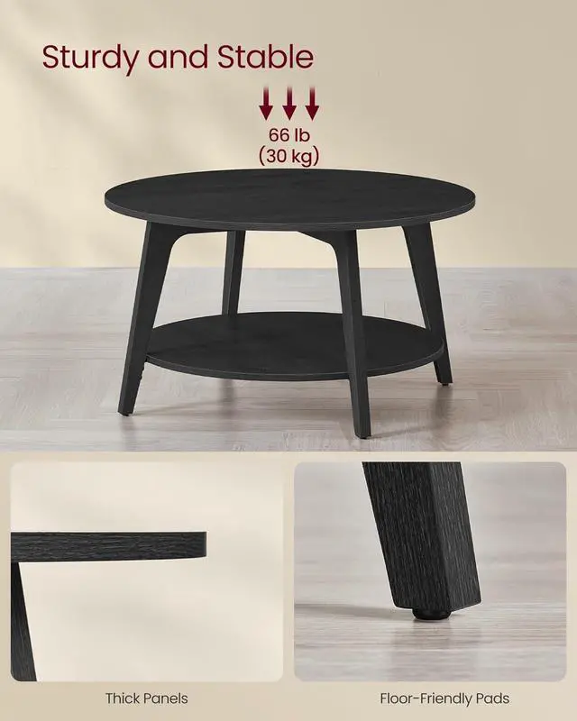 2-TIER COFFEE TABLEMeasuring 31.5 " dia. x 17.7 " H, this 2-tier coffee table offers ample space to keep your living room essentials organized and within reach