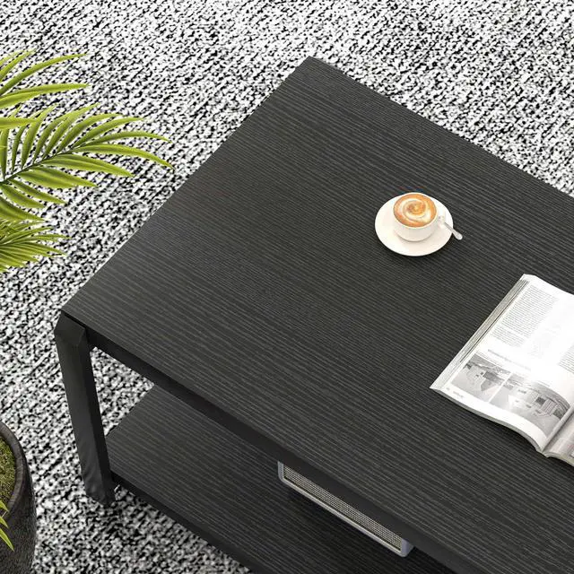 Rustic Industrial: This coffee table features a black wood grain surface and black powder-coated metal frame, combining modern, industrial, and retro styles. Its simple lines and unique look fit seamlessly in living rooms, reception rooms, and offices
