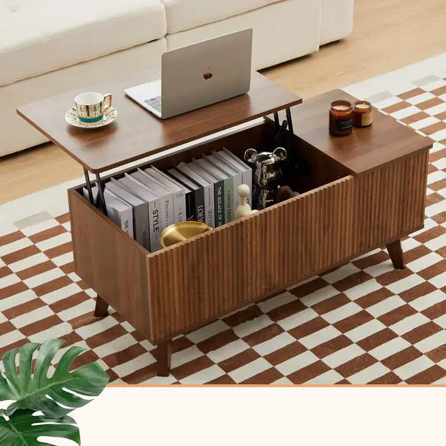 Modern DesignThe lift tabletop coffee table is fabricated through a special technology, the fluted panel design is unique and elegant. The wood grain table top creates the natural beauty of a rustic coffee table, mid-century design makes the coffee table more modern. The rounded corners also softens the look of the streamlined frame and provides an environment safe for little ones.