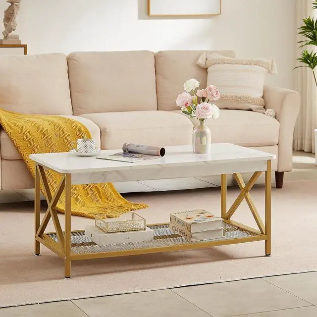 STURDY CONSTRUCTION The coffee table features X-shaped support legs to ensure durability; sturdy and durable with a weight capacity of up to 200 lbs. High-quality thick board, beautiful appearance, waterproof and easy to clean.