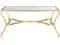 The gold finish and glass top of this coffee table will add the perfect accent to your home