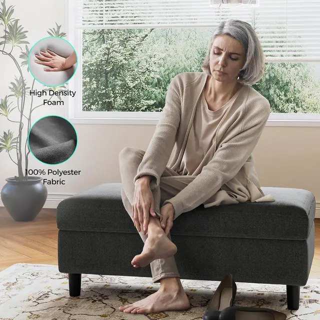 Supreme Comfort: Experience luxurious seating with high-density foam padding and a breathable linen-look fabric covering. This storage bench offers a plush and supportive seat that' s a joy to relax on