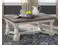 RECTANGULAR COFFEE TABLE: This coffee table goes to town on modern farmhouse style. Distressed two-tone treatment blends a weathered gray with vintage white for an utterly charming effect
