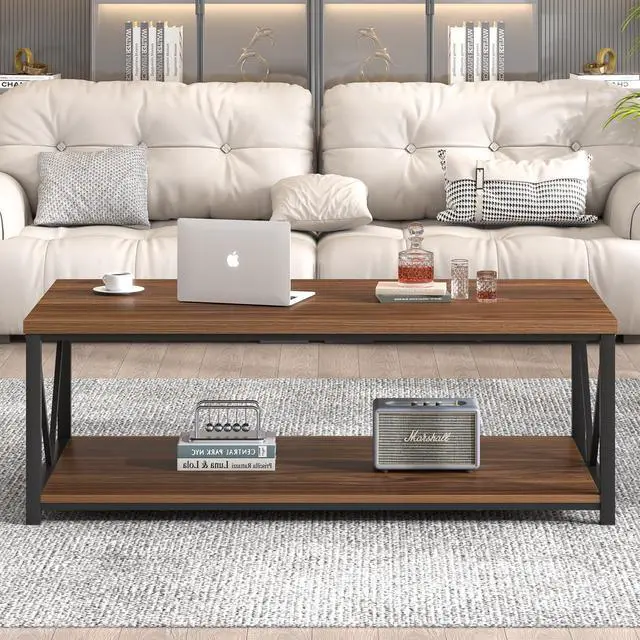Versatile: This wooden coffee table with storage features an open 2-tier storage design, perfect for organizing books, magazines, toys and other living room essentials. Its versatile size makes it great for both small and large living room spaces, and it can also serve as a tea table for home office.
