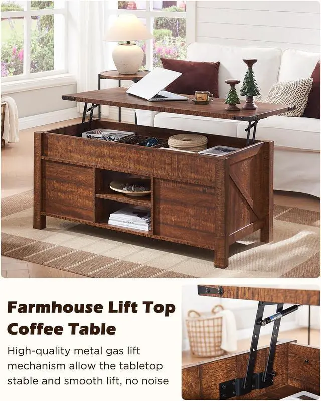 Essential Living Room Table With Lift-Top: Do you often find yourself hunched over your coffee table to type on your laptop or eat a quick lunch? OKD coffee table with lifting top allows you to raise the tabletop to a more comfortable height for task. Equipped with high-quality hinge that take minimal effort to operate and provide smoothest motion, allow the tabletop can be easily raised or lowered to meet different needs, ensuring a comfortable user experience. Plus, additions to the farm decor