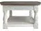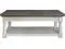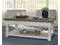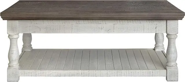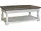 CREATING A PRESENCE: Creating a large presence in your room, this cocktail table carries a two-tone finish with a distressed weathered gray top set on a distressed vintage white base