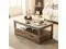 • This wood coffee table combines farmhouse appeal with spacious storage options. Made with P2-grade engineered wood and a waterproof surface, easily wipe away any spills as you display your favorite decor.