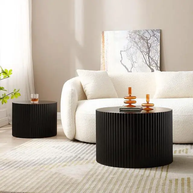 Strong Structure-This circle drum coffee tables adopt MDF material, Multi-step finish process achieves both good looks and superior durability. Foot pads at the bottom can be non-slip to prevent scratches on the floor.