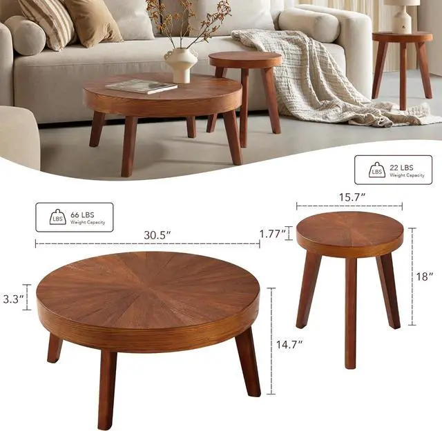Durable construction for long-lasting use: Made from sturdy MDF and wood veneers, this Living Room Coffee Table Set is sure to be a lasting favorite, and its solid wood legs provide added stability. With thickened wood and tabletop thickness up to 4" / 3.2 ", these wood coffee tables ensure double stability.