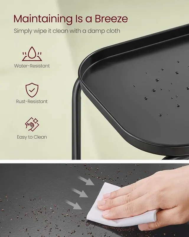 WATER-RESISTANT AND DURABLECrafted from quality powder-coated steel, this end table is both water- and scratch-resistant and easy to clean. Perfect for bathrooms or balconies, it offers excellent durability, outperforming traditional wooden tables