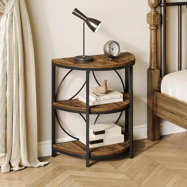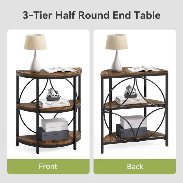 Ample Storage Space: The semi-circle end table features 3 tiers of open shelves, offering enough storage space for books, magazines, lamps, vases, photos, drinks, or storage boxes, helping to keep your space organized.