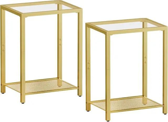 Beneficial Glass End Table: I am a gold side table with 2 open shelves, satisfying your diversified needs of storing your commonly used remote controls, books, magazines etc. in right order and keeping items within your reach, no worry of clutter
