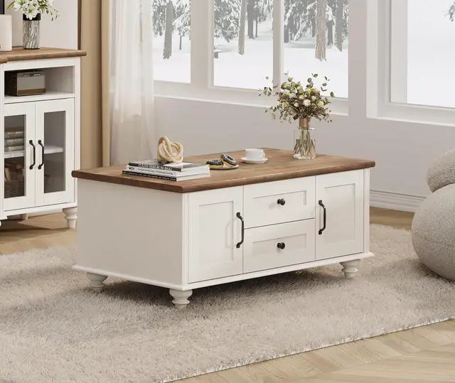 Chic Modern & Farmhouse StyleThe rectangular coffee table is designed with white body and gourd legs to be a great combination of modern and vintage farm style. Especially, the unique design of the same front and back side makes you don' t need to distinguish between the front and back or worry about the back being unsightly.